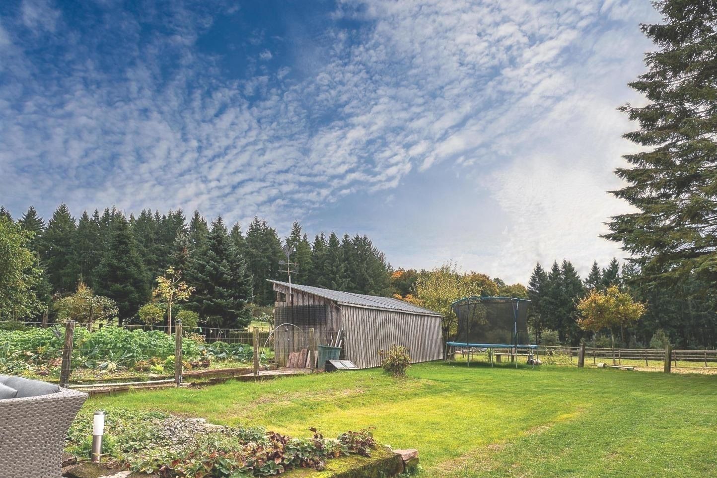 Hintereingang des Hauses befindet sich ein Garten, ideal für Freizeit oder Gartenarbeit.