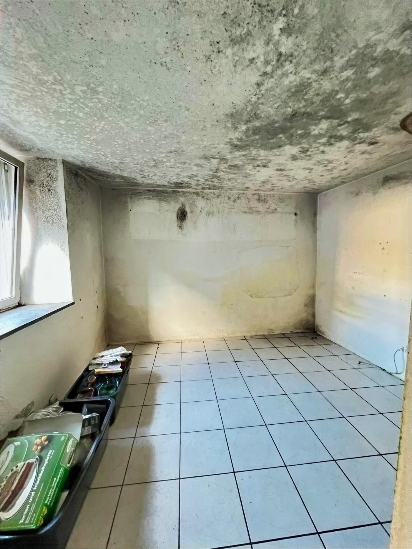 Es handelt sich um ein Renovierungsbedürftiges Reihenhaus mit einem Stellplatz an der Vorderseite des Hauses.