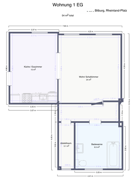 Praktische Raumaufteilung auf ca. 54 m², ideal für Singles oder Paare
